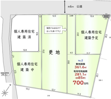 【外観】敷地面積広々109坪以上!宅地有効面積85坪!建築条件なし!都市ガス利用可!前面道路6m!